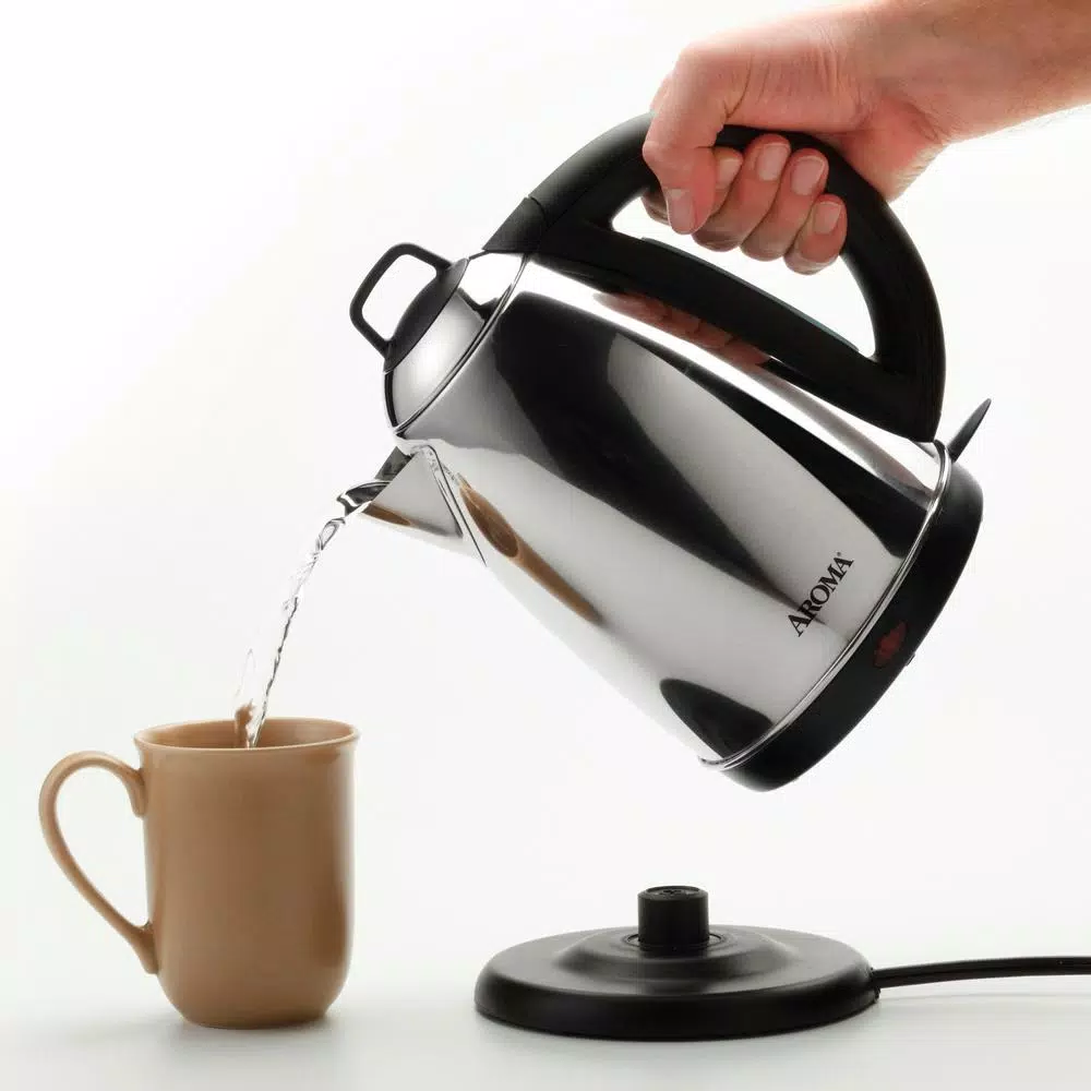 The Hot H20 X-Press from AROMA provides boiling water in a matter of minutes. The 1.5 l capacity is ideal for a variety of uses-hot tea, soups, instant coffees, oatmeal, hot chocolate, noodles, baby formula and more. Once water reaches a boil, the kettle will automatically shut off and lifts off its base for easy, cord-free pouring. The beautiful polished stainless steel finish looks great whether serving or simply sitting on the counter.