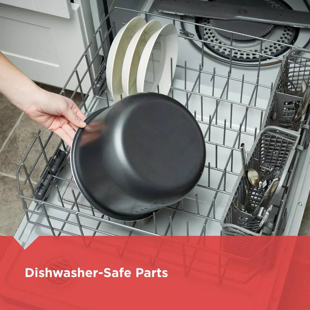 Turn up the pressure for faster cook times, The BLACK+DECKER 11-in-1 Cooking Pot gets your favorite meals to the table quickly by sealing in heat, steam, and flavor throughout the cooking process. Choose from 7 dedicated pressure functions and 4 slow cooker functions to make all your favorites with one-pot convenience: meats and roasts, soups, stews, rice, and plenty more. You can even sear meat with the browning function before pressure cooking it to perfection and adding in other ingredients. Other non-pressure functions include four slow cooking settings and keeping food warm. Safety is a priority with this pressure cooker, and it’s designed with 9 safety checks to ensure the unit works correctly and safely every time. Plus, the digital controls and delay timer make it easy to select the exact function and time you desire.The nonstick cooking pot is dishwasher-safe and so are the included accessories: trivet, rice-measuring cup, and nonstick-friendly serving spoon. Also included is a recipe book packed with delicious meals designed especially for one pot pressure cooking. Get ready to save time in the kitchen. The BLACK + DECKER 11-in-1 6-Quart Cooking Pot is the perfect way to make delicious food fast vs BLACK + DECKER toaster ovens and standard slow cookers, always make sure to follow food safety recommendations and visit www.foodsafety.gov for more information.
