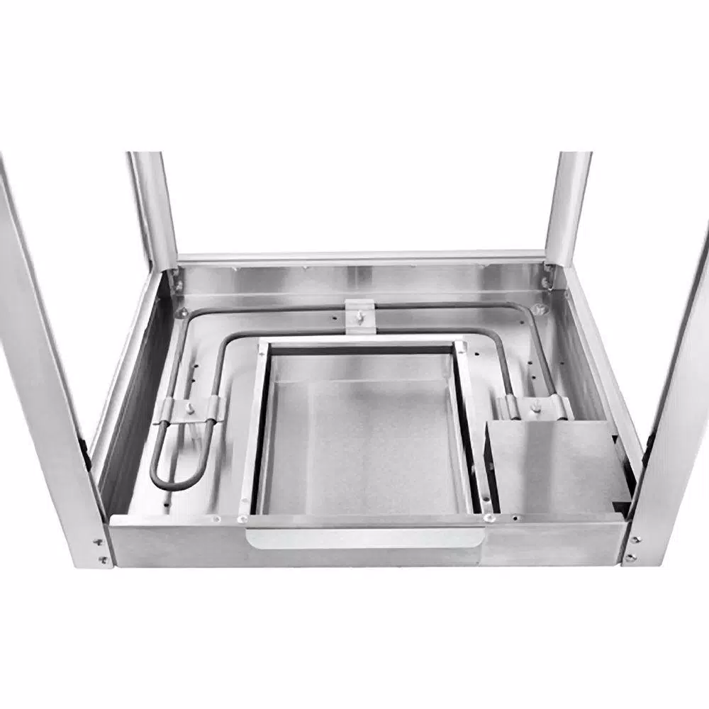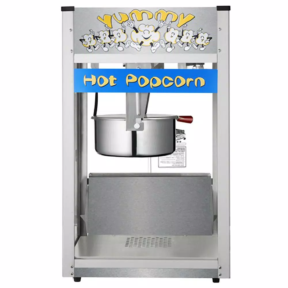 These commercial quality machines feature stainless steel food-zones, easy cleaning stainless steel kettles, an exclusive warming deck, old-maid drawers (for un-popped kernels), tempered glass panels and an industry leading 12 oz. kettle operating on 1350-Watt. With the sleek style design, you will be reminiscing about your early days at the ball game, carnival, or the movie theater. Whisper Quiet Design-Silent Operation, Stainless Steel / Commercial Quality, 12 oz. Kettle, Warming Deck to keep the popcorn warm and fresh, 3 Switch Design, Premium Grade Stainless Steel, All Metal Gears-Competition uses plastic, Safer Packing – double wall stock and extra packing to ensure a safe deliver, Robust Design/Craftsmanship backed up by a 5 year warranty. Features: Deluxe model with 3 position control switch and 1350-Watt, Switches include: spot light warmer, stirrer and pot heater, Tempered Glass (All Glass), Warming Deck, All metal gearbox, Built-in warmer light, Popcorn scoop is included, Reject kernel tray, Kernel and oil scoop is included, Heavy-duty powder coated steel and stainless steel construction, Makes roughly 5 Gal. of popcorn per batch. Additional Features: ETL approved. Heated Warning Deck keeps Popcorn Warm and Fresh, 4 Vibration and Skid Proof Rubber Feet for scratch protection, Easy to Use and Clean with Water, Light bulb: 60-Watt, Wattage: 1350-Watt, Warranty: 5 Years, Weight: 45 lbs., Dimensions: 15-1/2 in. L x 18.5 in. W x 29.75 in. H.