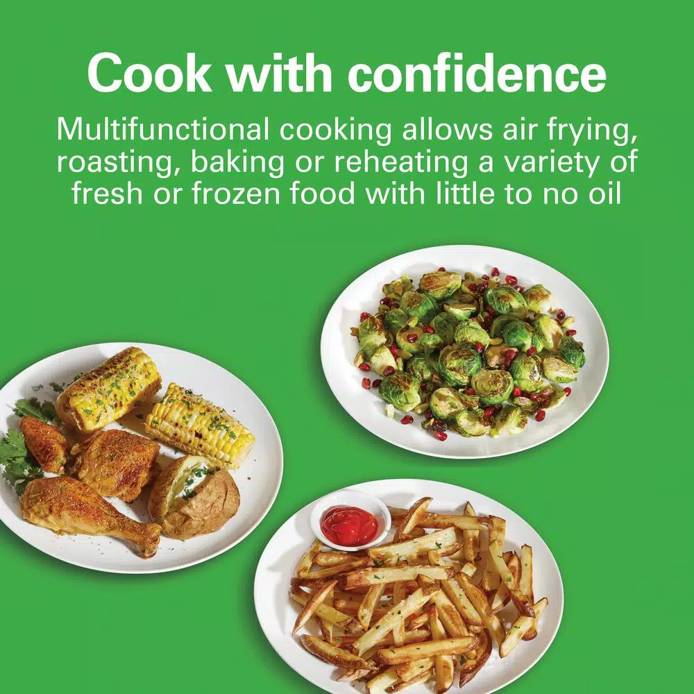 - 8 one-touch pre-set functions: steak, chicken, shrimp, fish, pizza, French fries, baked goods and veggies