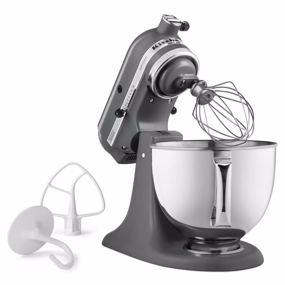 Make up to 9 dozen cookies in a single batch with the KitchenAidยฎ Artisanยฎ Series 5 Quart Tilt-Head Stand Mixer. This mixer also features 10 speeds to thoroughly mix, knead and whip ingredients quickly and easily and is available in a variety of colors to perfectly match your kitchen design or personality. For even more versatility, use the power hub to turn your stand mixer into a culinary center with over 10 optional hub powered attachments, from food grinders to pasta makers and more.
