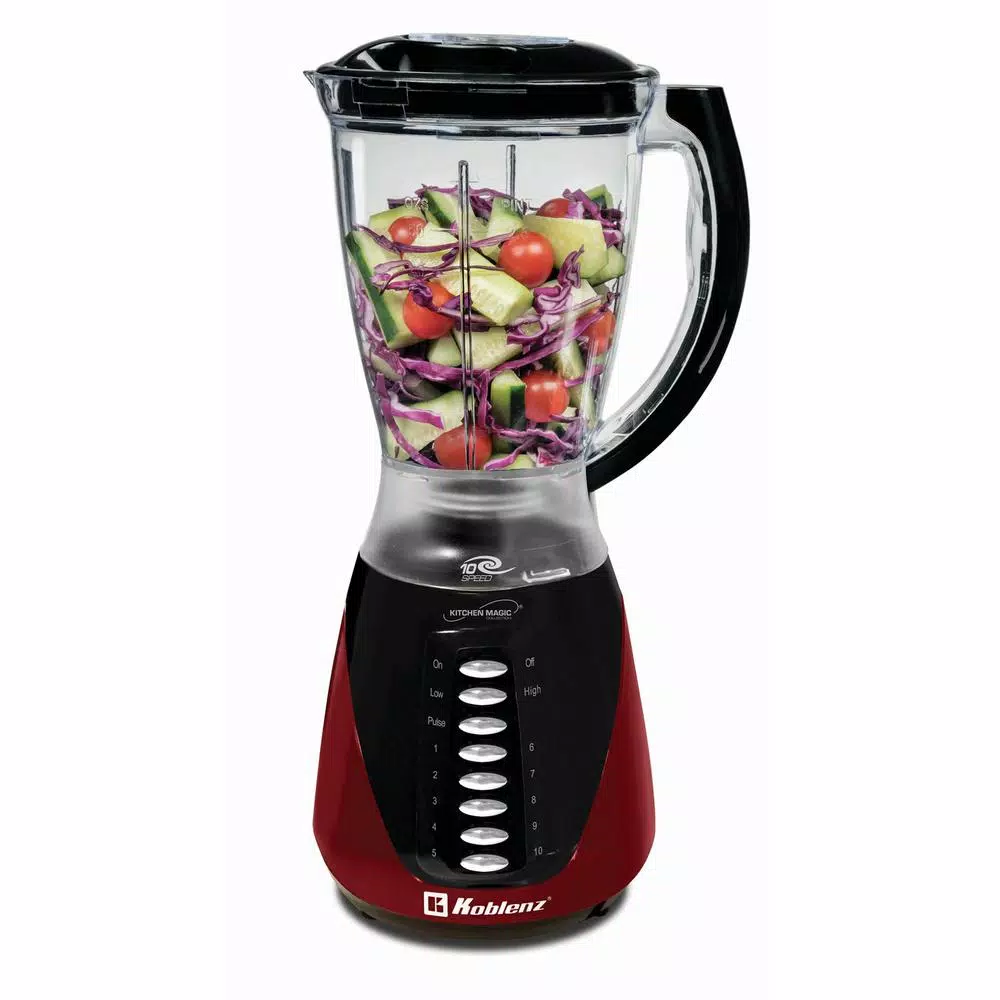 The Koblenz 1.5-Liter Kitchen Magic Collection 10-Speed and Pulse Plastic Jar Blender features a 400-watt motor and 2-year limited warranty. Measurement indicators such as liters, ounces, cups and pints on the jar with 4-stainless steel blades. This Koblenz blender is ideal for all your blending needs.