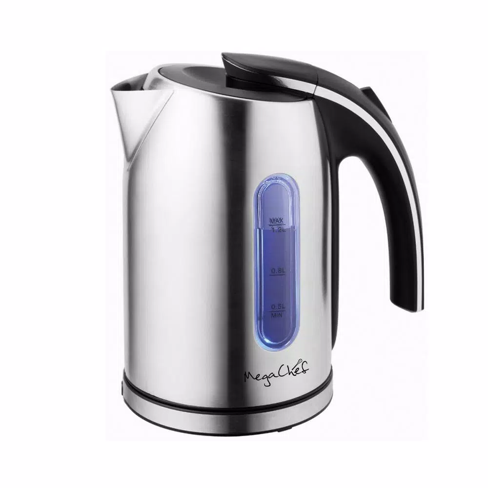 Make all your favorite hot beverages and more with the Mega Chef 1.2Lt. Stainless-steel Electric Tea Kettle. This kettle has a sleek design with a stainless-steel finish that looks great in any kitchen. Heat up water worry free with the auto shut off feature. Clean up is a breeze with the removable and washable filter and worry less about messes with the drip-free spout.