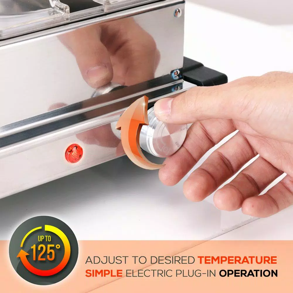 NutriChef was created on the principle that healthy home cooking should be attainable to all, regardless of skill level and economic status. Starting in 2014, we noticed the disconnect in our lives and in the lives of those around us. We were so busy, always rushing forward and our health and personal lives suffered. We needed to find some way to slow down and put our health first, all without sacrificing convenience or taste. Could we somehow create healthier versions of our favorite foods, easily in our own kitchens. The answer was a resounding yes and NutriChef was born. What’s in the Box: Buffet server station, medium warming plate tray, 2-large warming plate tray, Lid covers. Technical Specs: high-powered heating element: 140-Watt. Temperature range: 32-257°F (0-125°C) medium Buffet tray capacity: 1.6 qt. (1.5 l). Large buffet tray capacity: 3.2 qt. (3 l) construction material: stainless steel, engineered ABS. Power cable length: 3.6 ft. Power supply: 110-Volt 1.5 l medium warming plate size: 8.5 in. L x 5.5 in. W x 2.3 in. H (each). 3.0 l large warming plate size: 27.6 in. L x 10.6 in. W x 4.9 in. H (each). Total assembled size: 21.9 in. L x 10.6 in. W x 4.9 in. H.