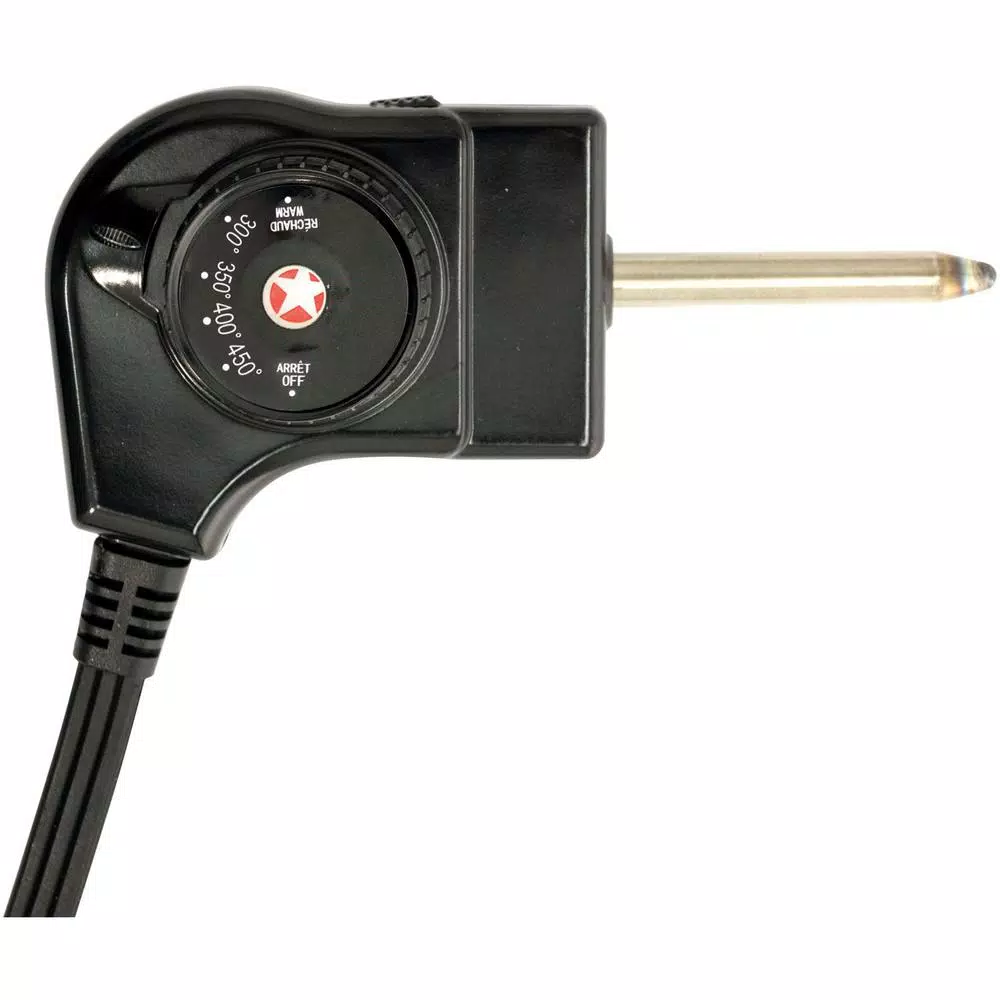 - Adjustable temperature control knob ranges from 176ยฐF to 400ยฐF