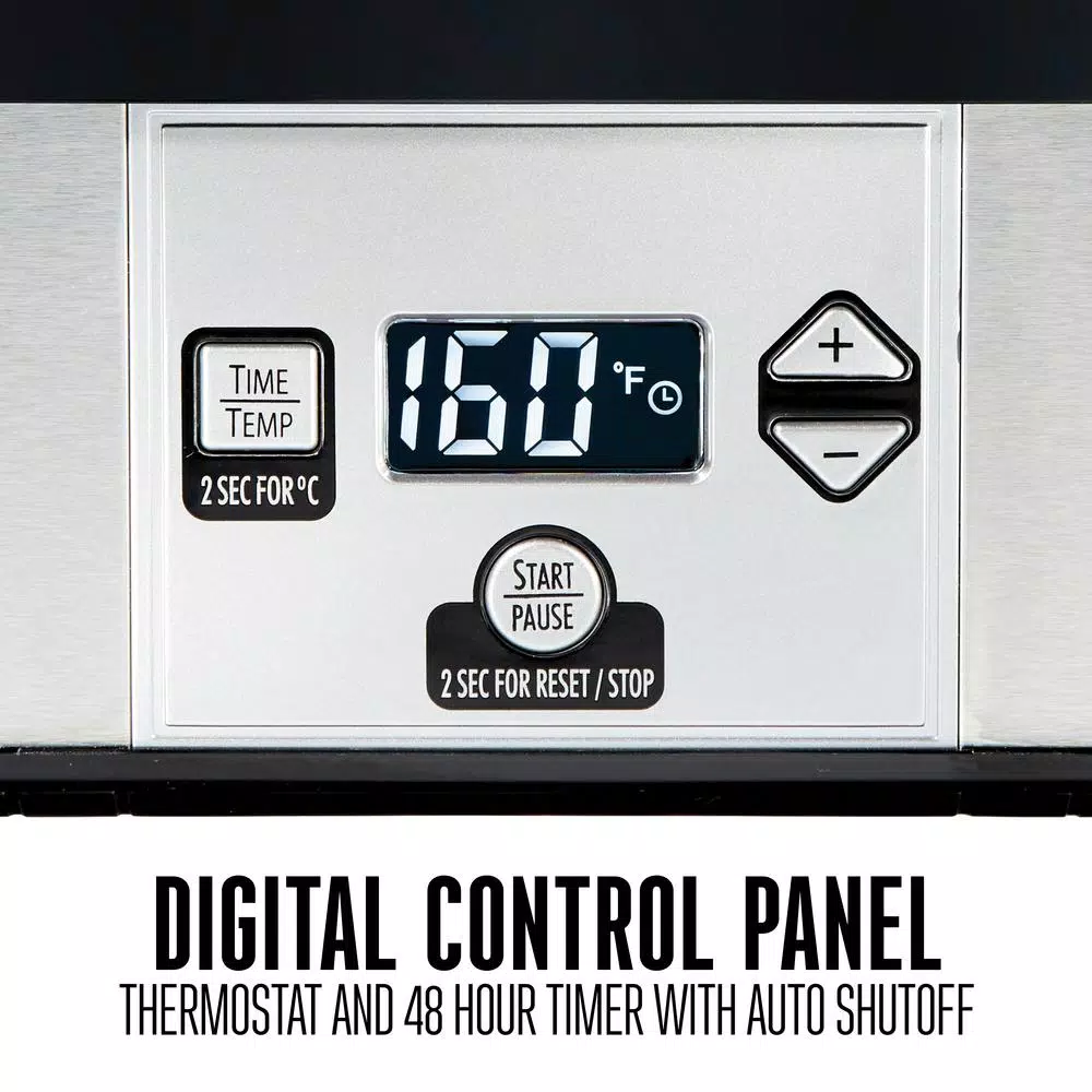 - Digital control panel features 48 hour timer with auto shutoff and adjustable thermostat (100ยฐF -160ยฐF / 38ยฐC โ 71ยฐC)